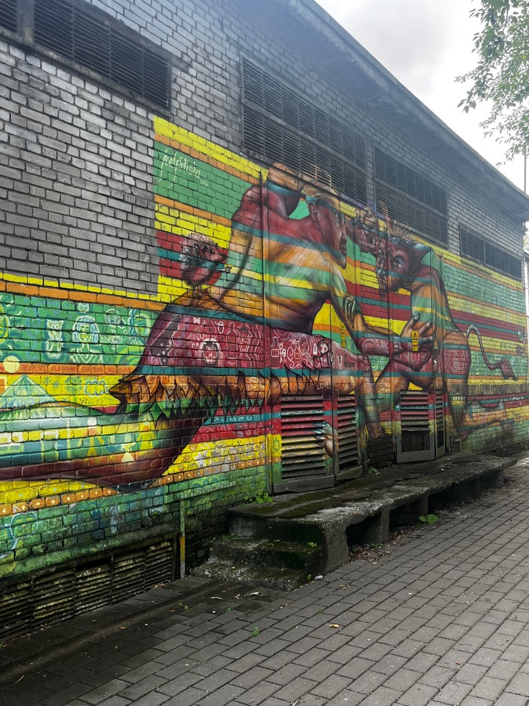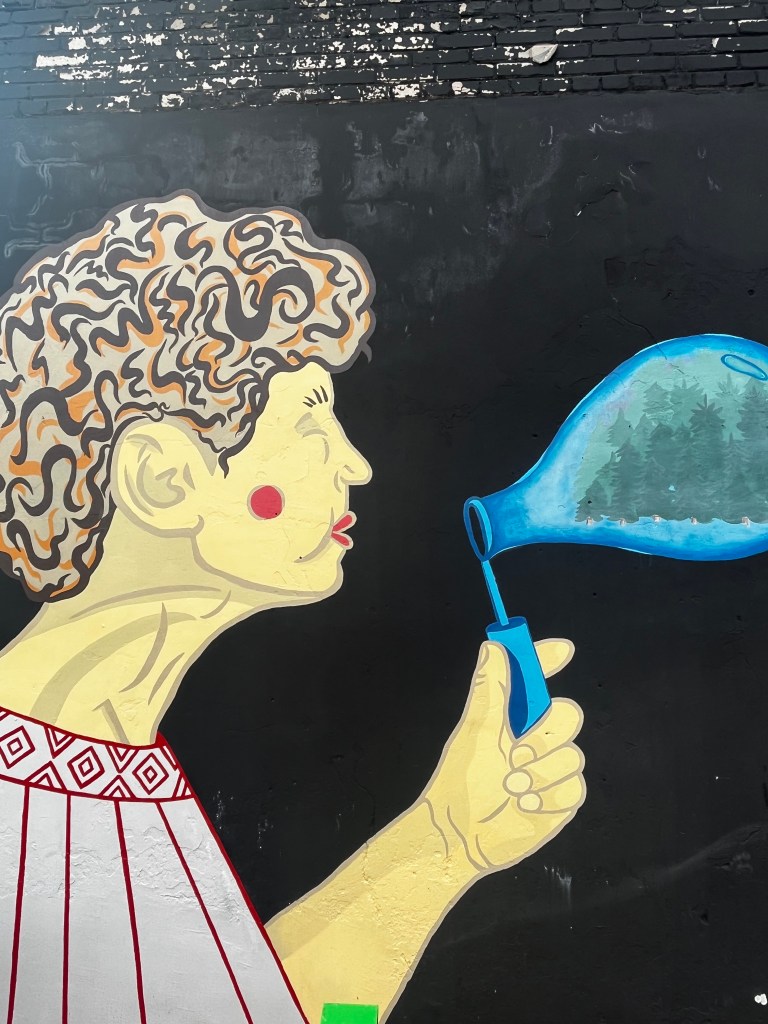 We returned to our apartment to rest for a bit and decided to head out in the evening to check out a brewery and Telliskivi Creative City. Northwest of Old Town, abandoned Soviet warehouses and factories have been transformed into galleries, workspaces, shops, cafes, and many other independent businesses. We first came upon Depoo, an outdoor area with shipping containers, murals, food trucks, and lounge areas on the site of the former train repair depot. Then across the street, Telliskivi Creative City is housed in a former Soviet factory complex. The area is strewn with murals and feels alive with creativity, youthfulness, and vibrancy. We were able to peruse some of the shops before they closed at 6 and enjoyed strolling through the “city” to admire the murals.