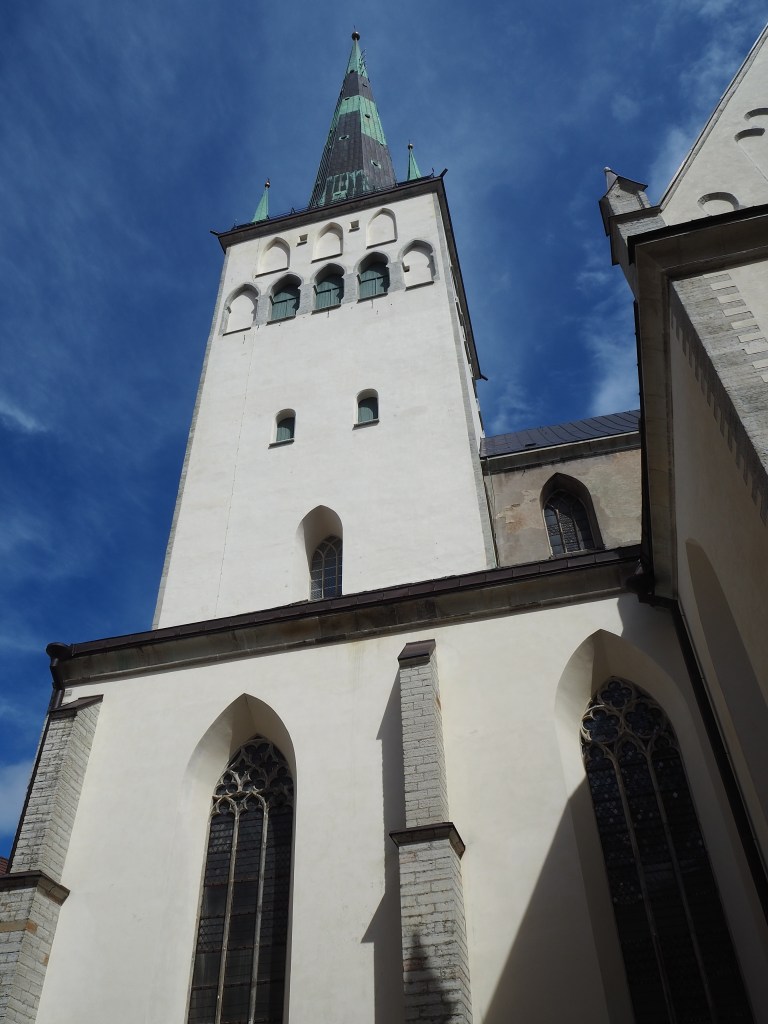 When we finally emerged, the rain had stopped and it was already turning into a gorgeous day. We walked in the direction of Old Town, starting off on its northeastern end. Our first stop was St. Olav’s Church, named for King Olav II of Norway and first built in 1267. The church has suffered two fires in its history and the most recent rebuilding was completed in 1840. The original steeple was originally 20 meters taller making it one of the tallest buildings in the world when it was completed. You can climb the tower for picturesque views of the sea and the town. I stubbornly wanted to give it a go, but Zach convinced me that it was out of the question for my weakened ankle, so he went up alone (which turned out to be the right choice).