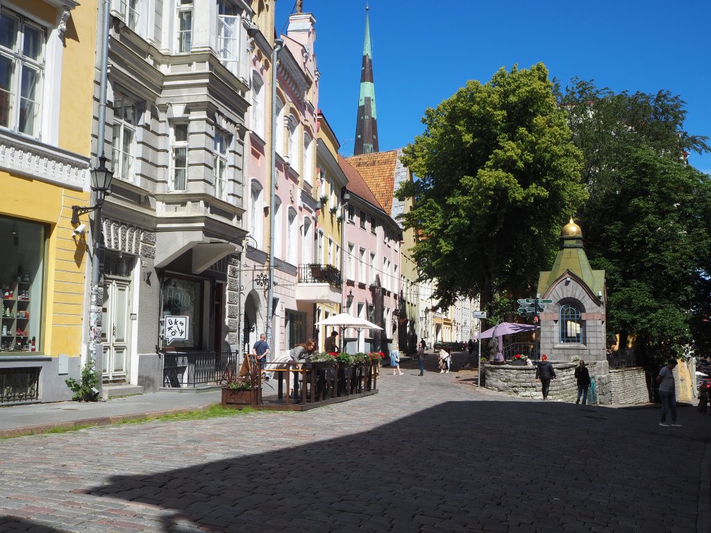 We arrived in Tallinn around 5:00. Disembarking well after the main rush meant I could hobble my way down the stairs and out into the terminal. Then we had to figure out where our Airbnb was and how to get there. There was some construction at the ferry landing, so getting our bearing was a bit confusing at first. Eventually, we figured out how to get there and get in – after mistakenly entering the basement! It seemed like the building may have contained all rentals. There were keypads everywhere – at the front door, to enter the corridors of flats, even to operate the elevator. Our flat was nice but compact, although the spacious patio helped make up for it. It was the only place we stayed where the bed was a fold-out sofa, leaving little space to sit any other time. Even still, it was fairly new with sleek interior finishes and a nice bathroom.