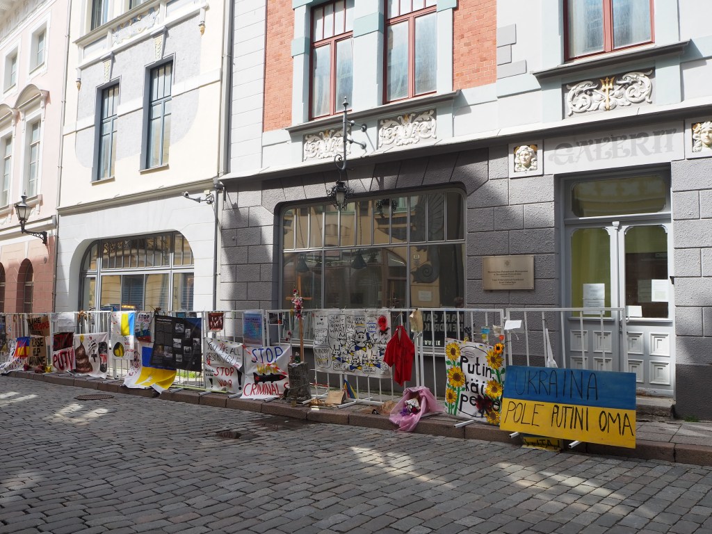 We emerged back into the daylight and continued along Pikk toward a small square. We passed the Russian Embassy, where the street was strewn with signs and posters protesting the war in Ukraine, as well as the only police presence we noticed during our stay in Tallinn. Once we reached the square, we decided to stop for a drink and dessert at Cafe Maiasmokk, the oldest operating café in Tallinn (and Estonia). It has been in the same location since 1864, and its name translates to ‘sweet tooth.’