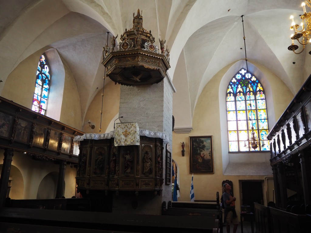 Next to Cafe Maiasmokk, the Church of the Holy Spirit is adorned with a clock on its exterior that has been operating since the 17th century. The church was known as the main place of worship for commoners and was the first church to hold services in Estonian. (Estonian was long considered a peasant language, with upper-class Estonians learning and using German instead.) The interior of the church has a lot of intricately carved wood decor, offset by the white walls and ceiling. The paintings along the galleries show various Biblical scenes and date back to the mid-17th century.