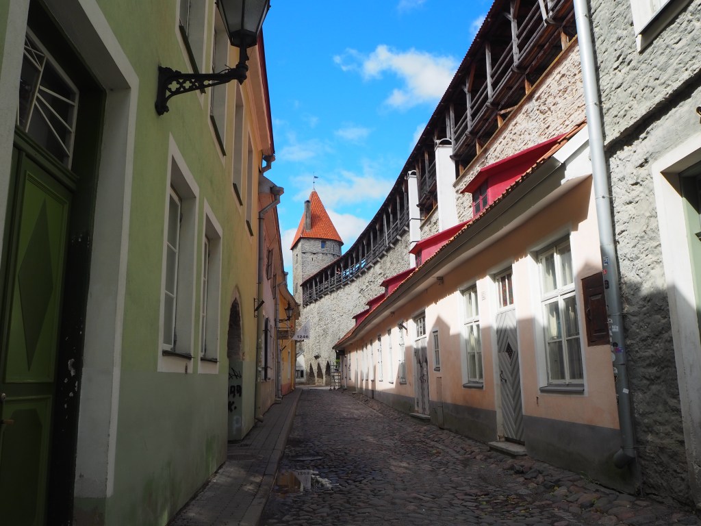 From St. Olav’s we backtracked a bit to the town gates and the back of Fat Margaret’s Tower. We should have gone the short distance to get a view from the front, but I was feeling rather limited. (We eventually saw it on our return to Tallinn later in the trip.) We did manage to stumble upon the Three Sisters, a trio of buildings that date back to the first half of the 15th century, although mention of them is first made in town documents in 1372.