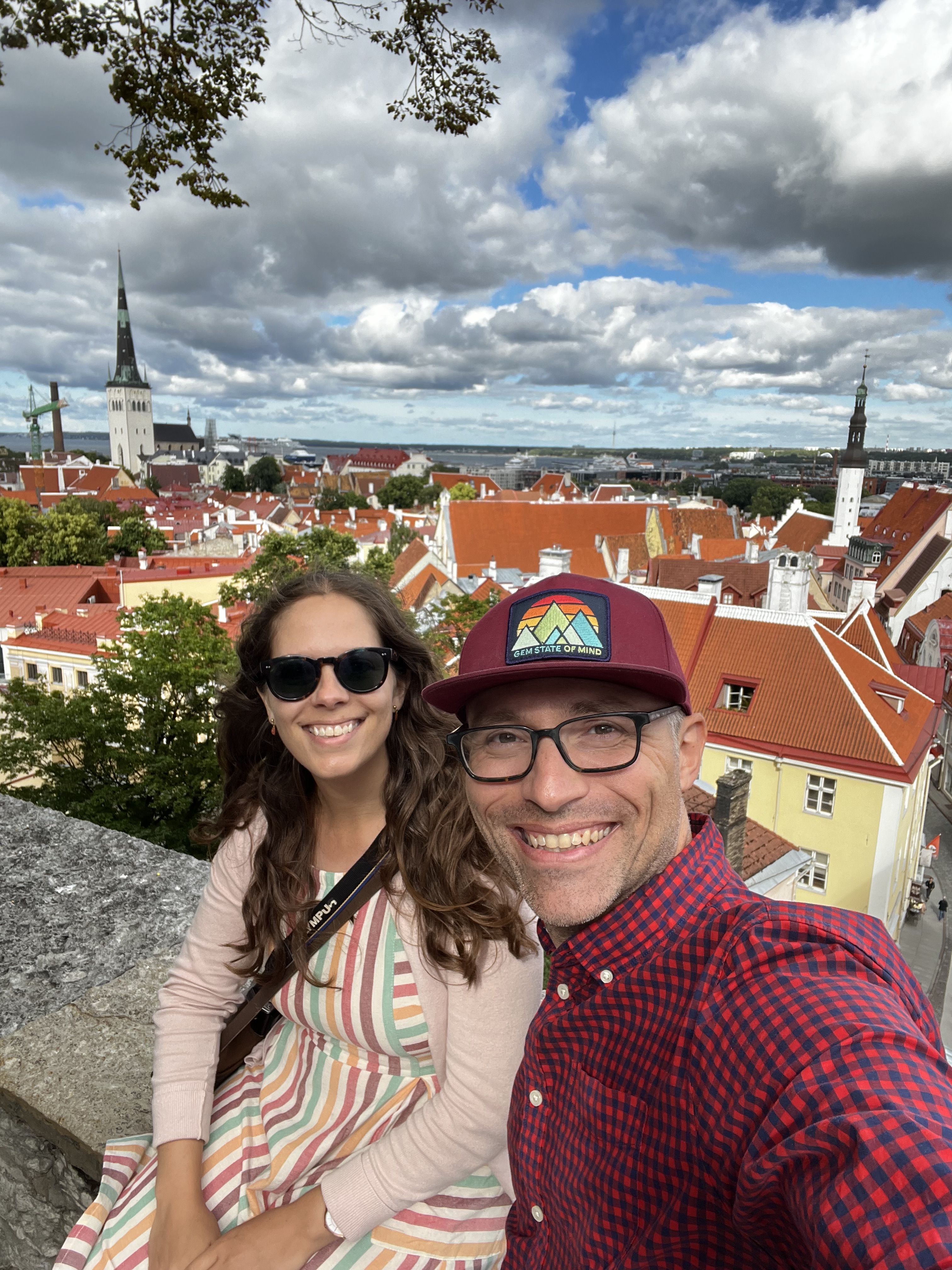 Zach was insistent that I could not climb to the top of Hellemann Tower, but when we entered the tower and saw a metal spiral staircase, his worries eased. I didn’t have any trouble slowly climbing the staircase, although at the top we had to squeeze through a small passageway and up a set of uneven stone steps. Connecting the Hellemann Tower with Munkadetagune Tower is a 200-meter-long old defense wall, accessible to visitors via a wooden platform. We walked a portion of the platform and then I let Zach go ahead to climb the second tower and capture views from above. The viewing platform alone offered a unique perspective of the Old Town.